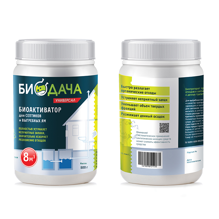 Препарат является биоактиватором для разложения фекальных стоков. БИОДАЧА универсал рекомендуется для всех видов хозяйственно-бытовых стоков – септиков и дачных туалетов. Высокоактивные бактерии, содержащиеся в препарате, эффективно расщепляют фекалии, жиры и другие вещества органического происхождения. Попадая в выгребную яму, дачный туалет или септик, препарат в несколько раз увеличивает эффективность работы данных сооружений. При внесении биоактиватора в индивидуальные очистные сооружения аэробного или анаэробного типа происходит интенсификация нарастания активного ила и, как следствие, повышение качества очистки сточных вод. Препараты серии БИОДАЧА не токсичны, не загрязняют окружающую среду, рН нейтральны, безвредны для человека и животных и полностью разлагаемы.